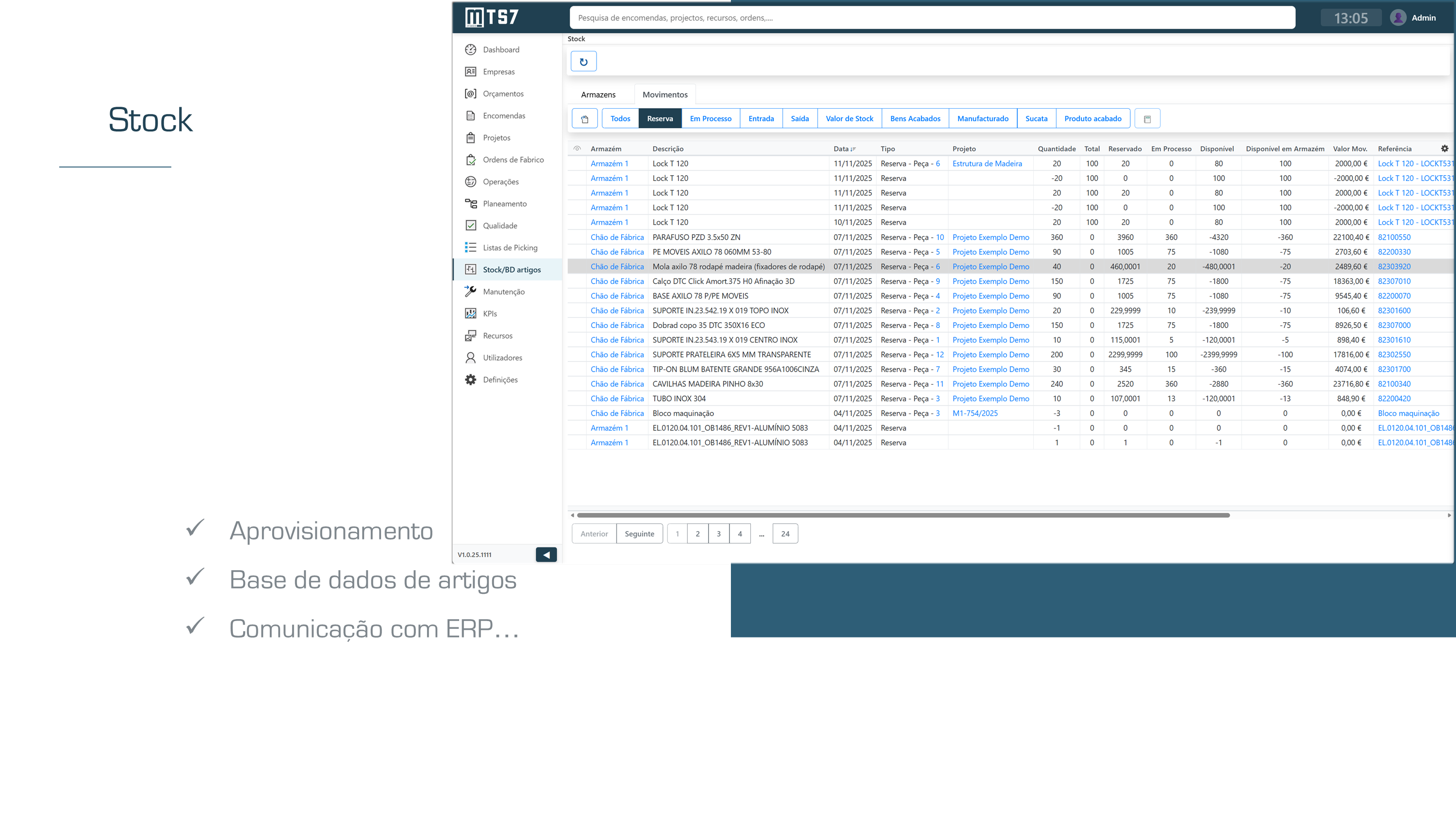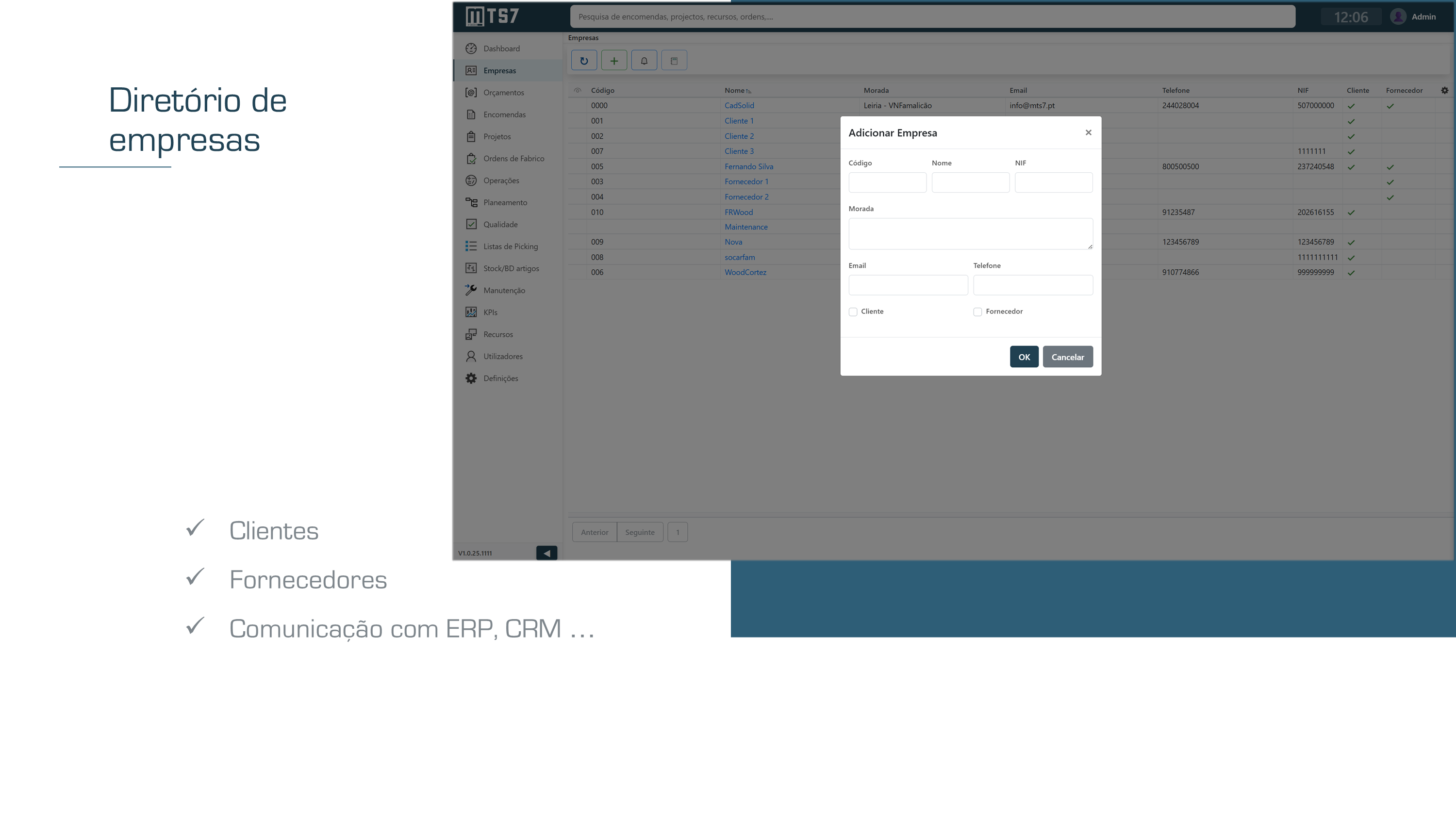 Apresentação do software Diretório de Empresas Gestão de Stock Orçamento Gestão de Chão de Fábrica Planeamento da Produção Qualidade Indicadores outros Pedir uma Demonstração